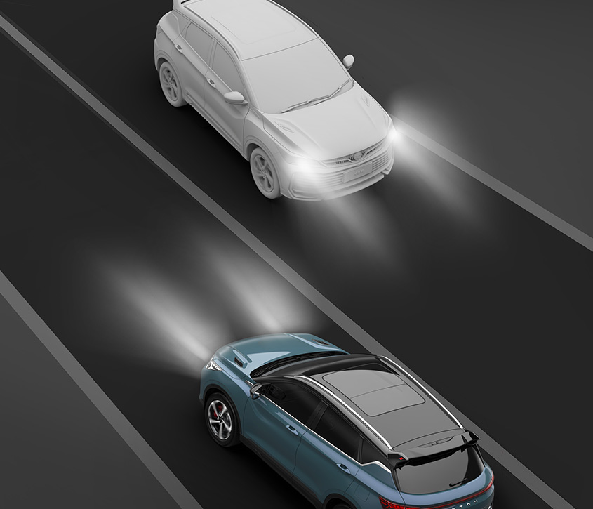 Automatic swap between low and high beams when other vehicles are nearby.