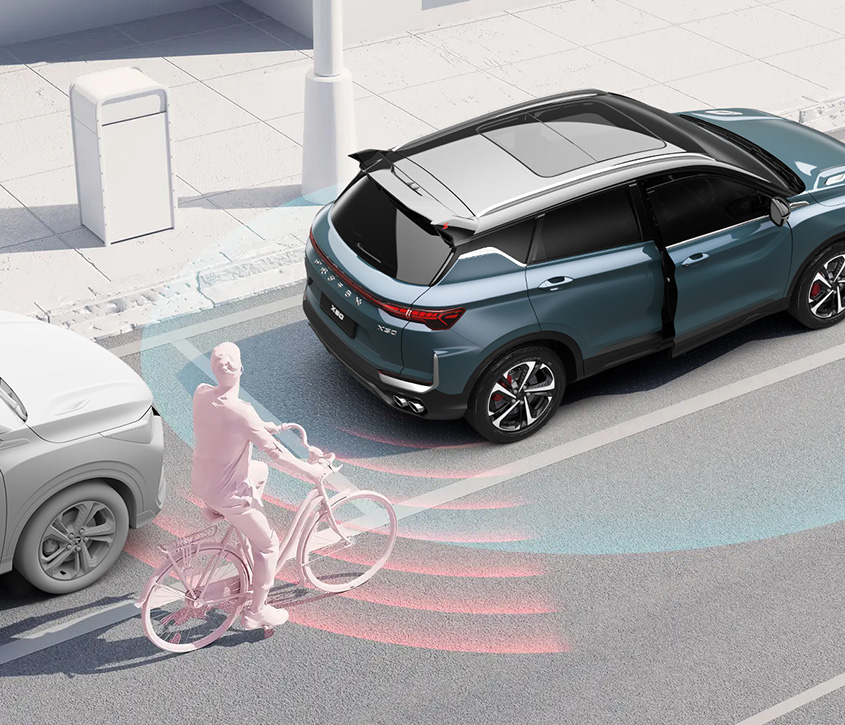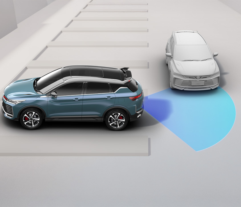Detects approaching nearby vehicles in the rear and sides when reversing.
