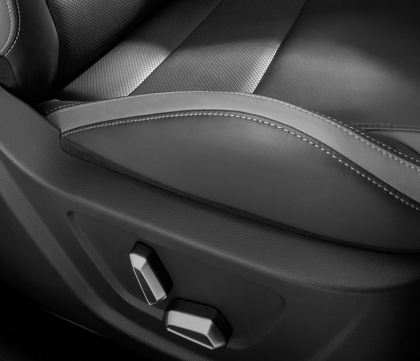 Experience luxury in every touch, now with crafted stitching pattern leatherette trim.