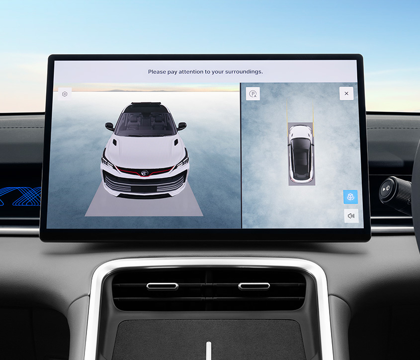 Full surround view that displays the top, sides, and bottom of the vehicle ensure you are given a full view of your surroundings.